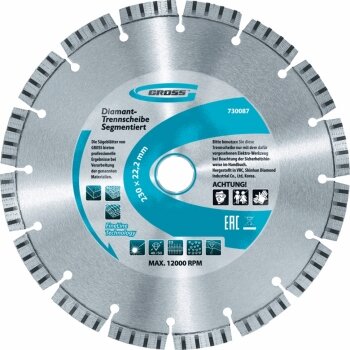 Диск алмазный Gross 730087, ф230х22,2мм, лазерная приварка турбо-сегментов, сухое резание Gross 3803 .