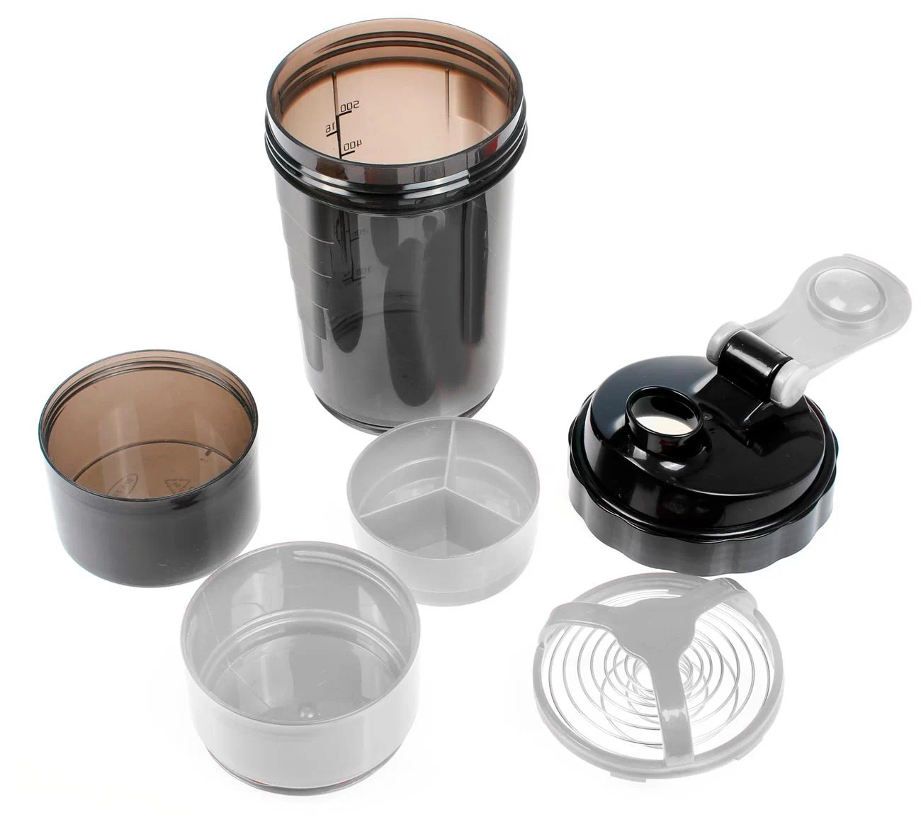 | Плюсы: | Шейкер с несколькими контейнерами. Удобно брать с собою на тренировку. |