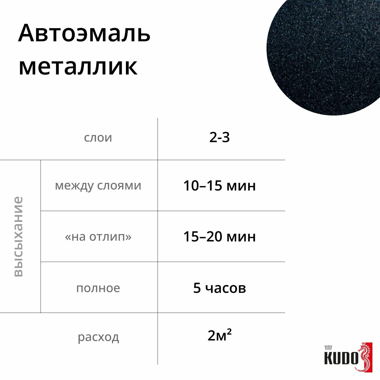 KUDO KU41495 Эмаь автомобиьная ремонтная метаизированная унный свет 495 520 м