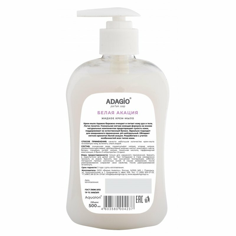 Крем-мыло жидкое 500мл перламутровое белая акация адажио с дозатором аквалон 1 шт