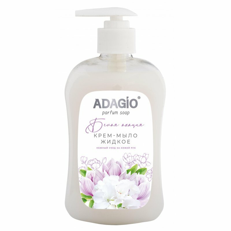 Мыло жидкое адажио 500 мл, Белая акация с дозатором, белое (крем мыло 450-550) интересное: