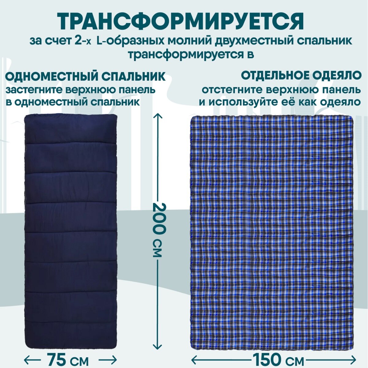 | Отзыв: | Спальник замечательный. Я 178 см. жена 168 см. сын 150 см. поместились в троём. Место много. Очень тёплый за счёт фланели. Ночью при температуре +18 пришлось раздеваться, было жарко. |