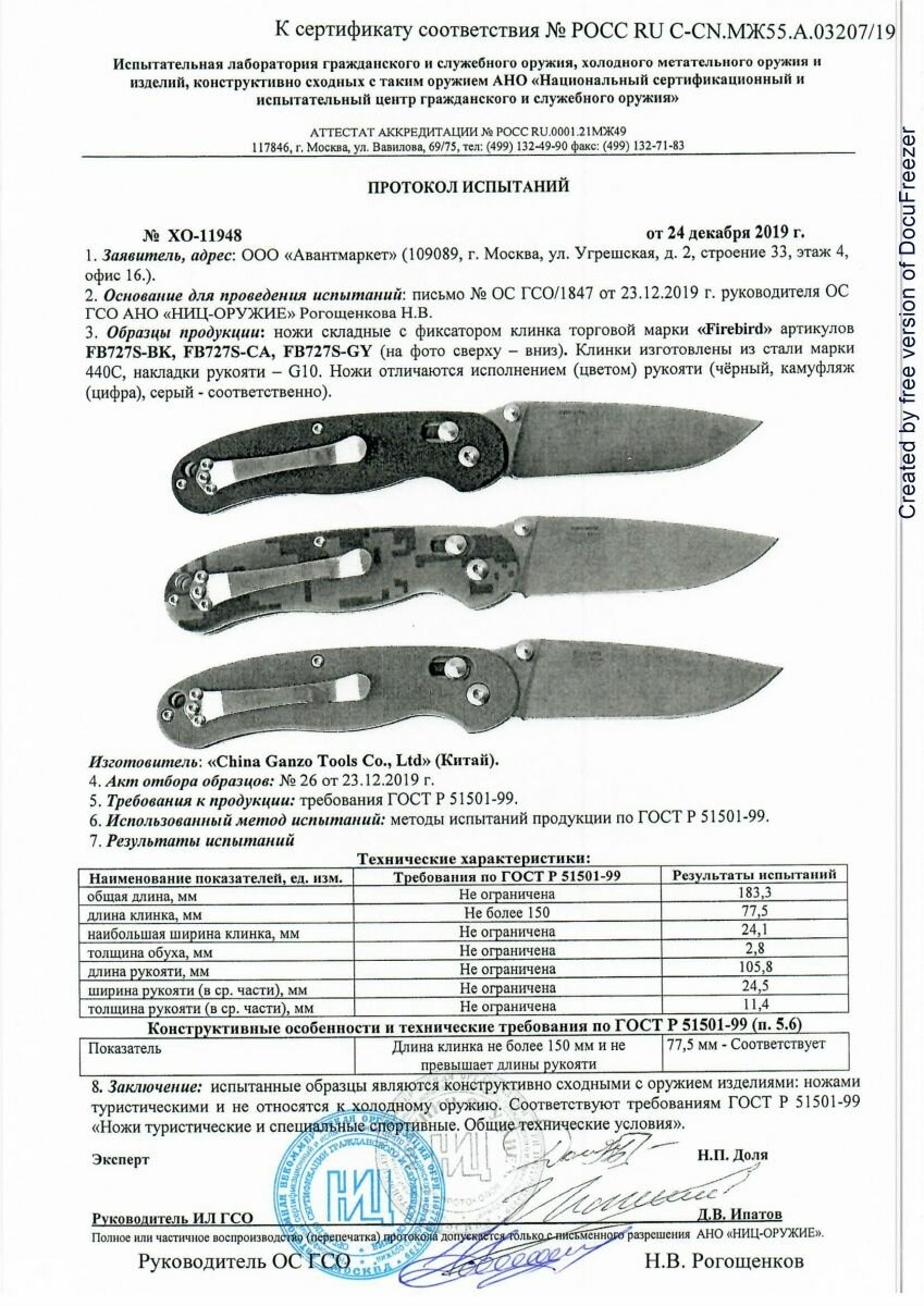 | Материал рукояти | стеклотекстолит G10 |