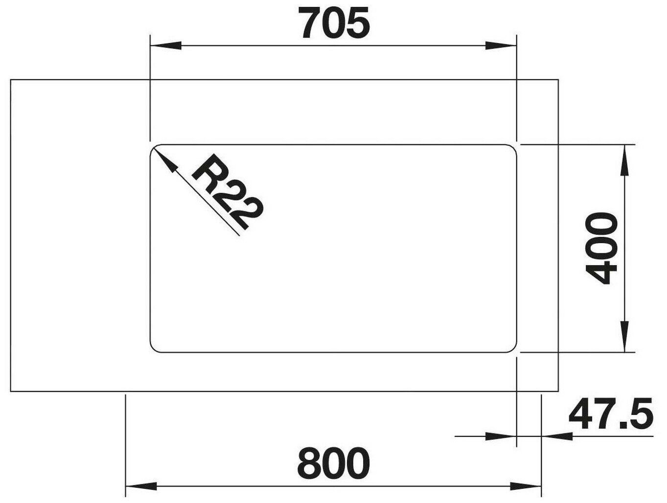 Кухонная мойка Blanco ANDANO 500/180-U, нержавеющая сталь, зеркальная полировка, прямоугольная