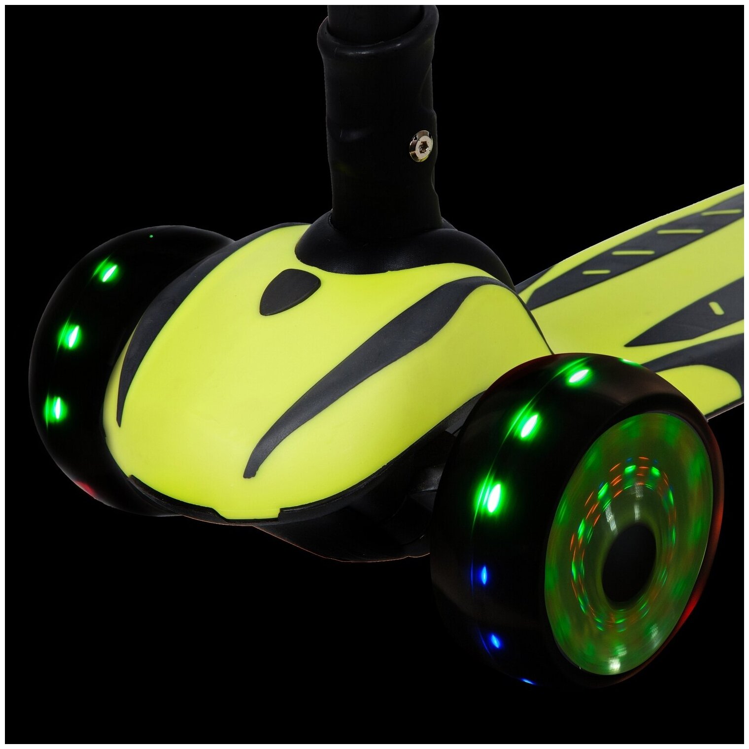 Самокат NOVATRACK Rainbow, свет деки и колес, музыка, лимонный