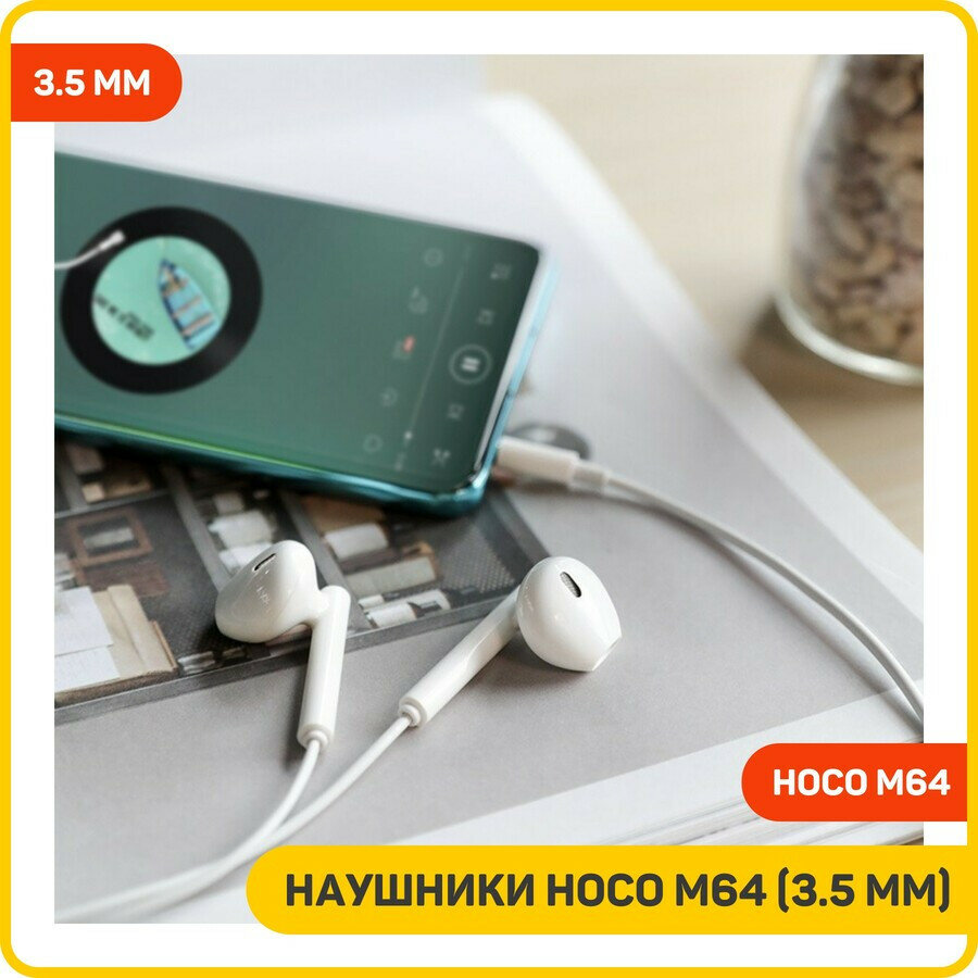 Проводные наушники M64 Melodious wire control earphones, HOCO, белые