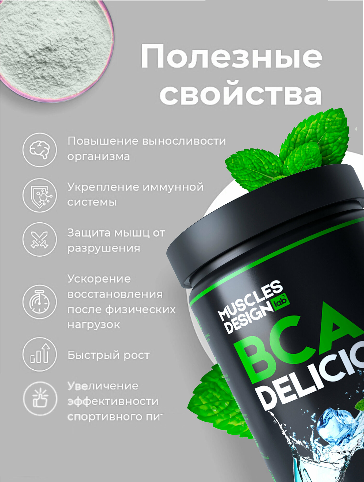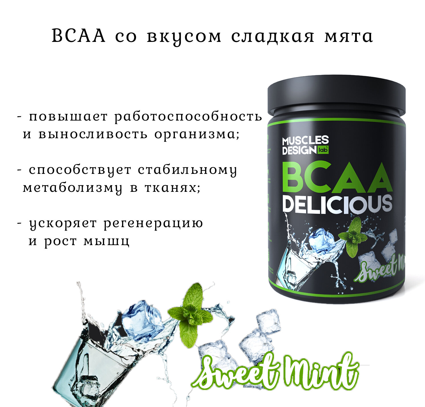 Muscles Design Lab / Аминокислоты BCAA Delicious - Sweet Mint / Сладкая Мята / BCAA 2:1:1 / БЦАА порошок / 200 гр