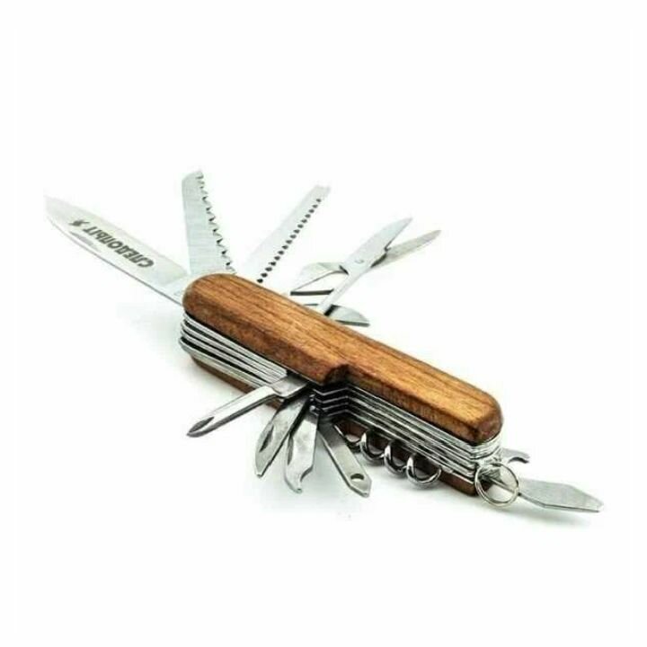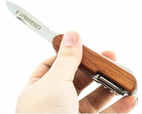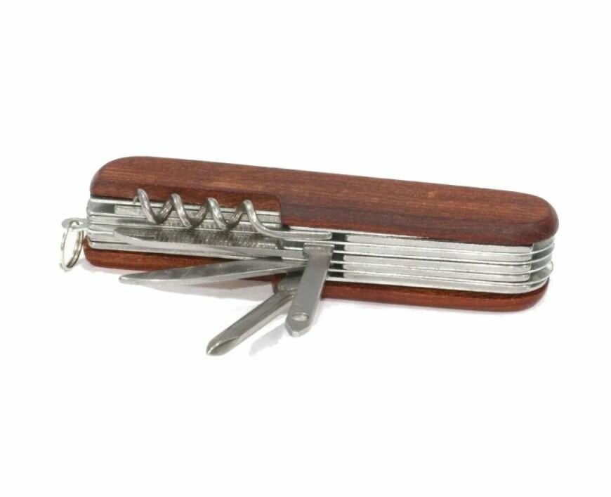 Мультитул Следопыт с деревянной ручкой (с карабином, 11 предметов)