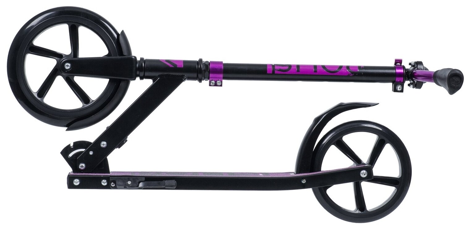 Самокат городской NOVATRACK POLIS PRO алюминий, складной с помощью кнопки на раме, эргономичный Y-руль с нескладными рукоятями, ассиметричная оригинальная платформа, колеса PU 230*200мм, фиолетовый