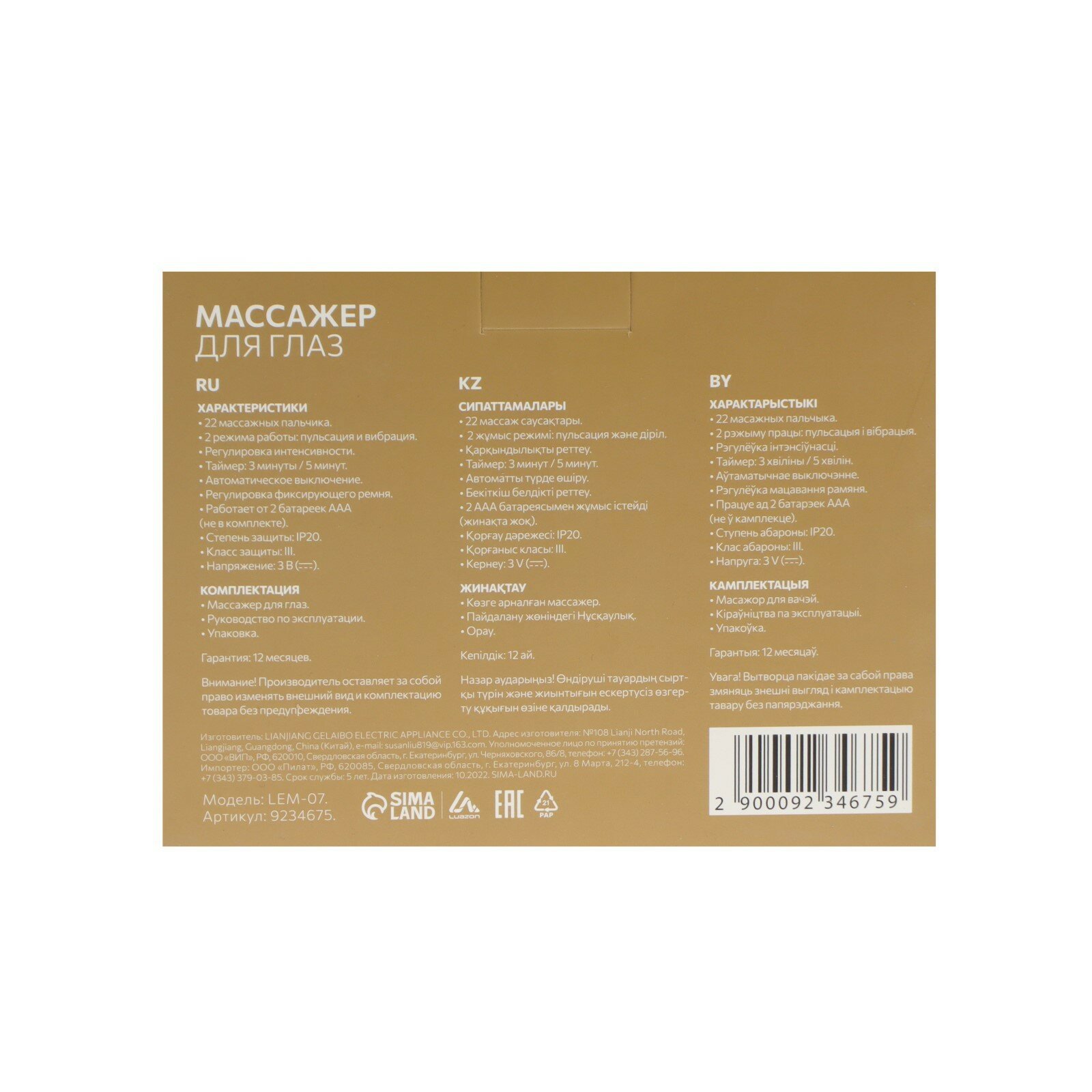 Массажёр для глаз Luazon LEM-07, 2 режима, 2хAAА (не в комплекте), зеленый интересное: