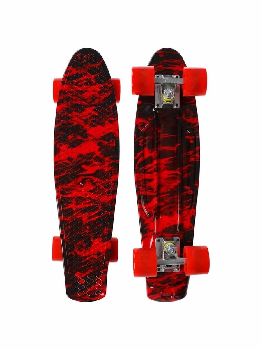 Скейтборд, Пенни борд ONLYTOP R2206, размер 56х15 см, колеса PU, АBEC 7, алюминиевая рама, цвет красный