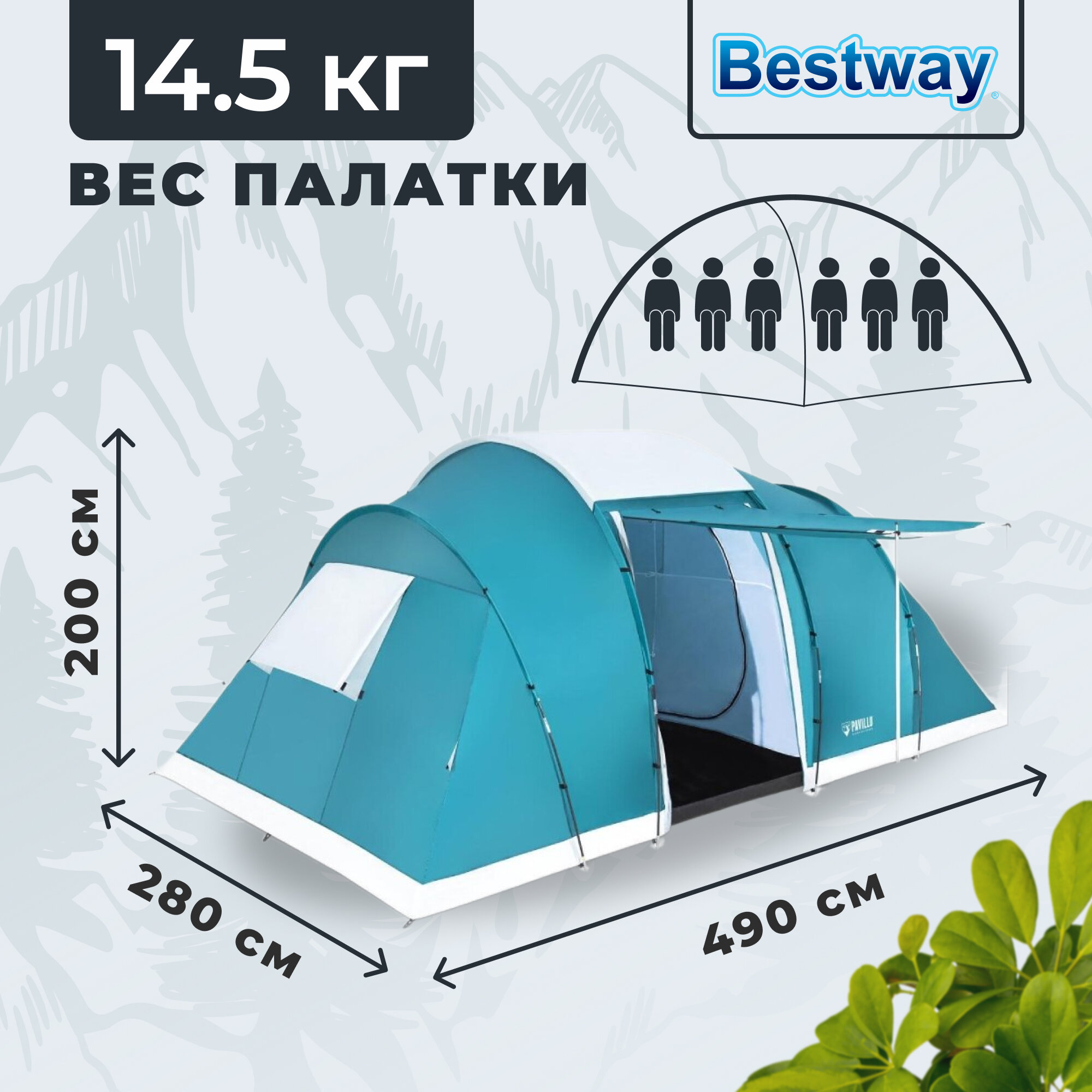 Палатка 6-мест, 490х280х200 см, 2 сл, 2 комн, 1 тамб, мос сет, Bestway, Family Ground 6, 68094BW