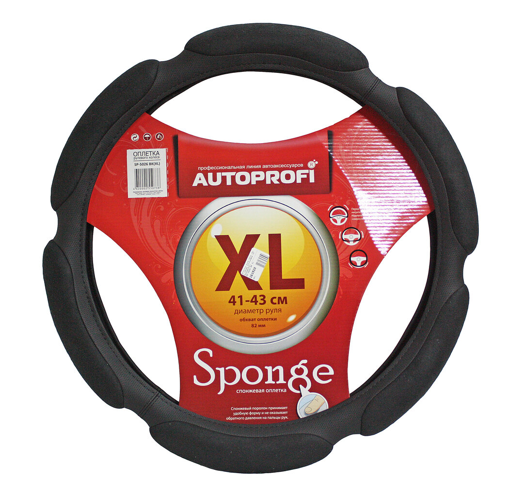 AUTOPROFI SP-5026 BK (XL) Оплетка руля XL Autoprofi поролон (6 подушечек) черная