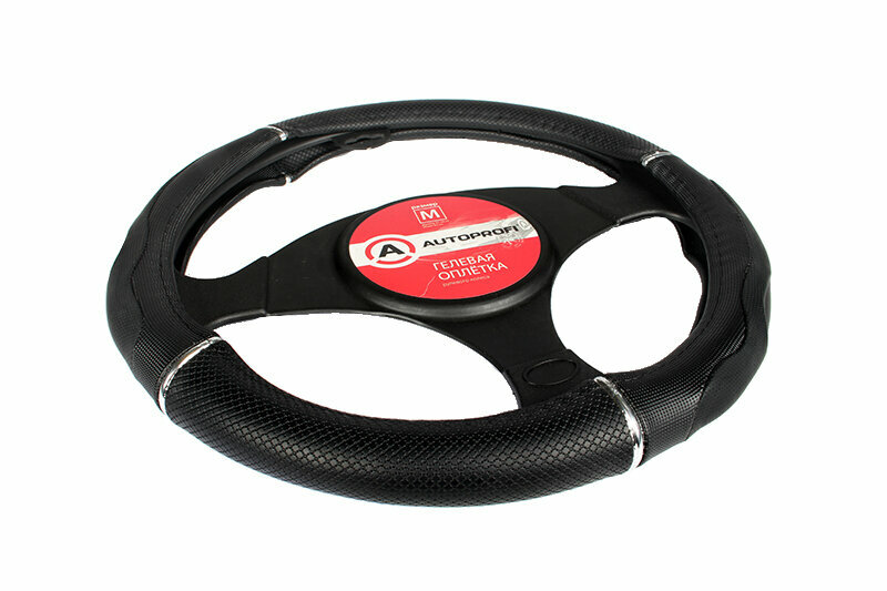 Оплетка на руль AUTOPROFI M 38см гелевый наполнитель, спорт.дизайн, экокожа + ПВХ, черная