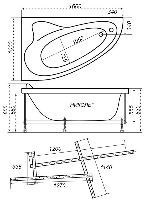 Акриловая ванна Тритон Николь 160х100 правая на каркасе
