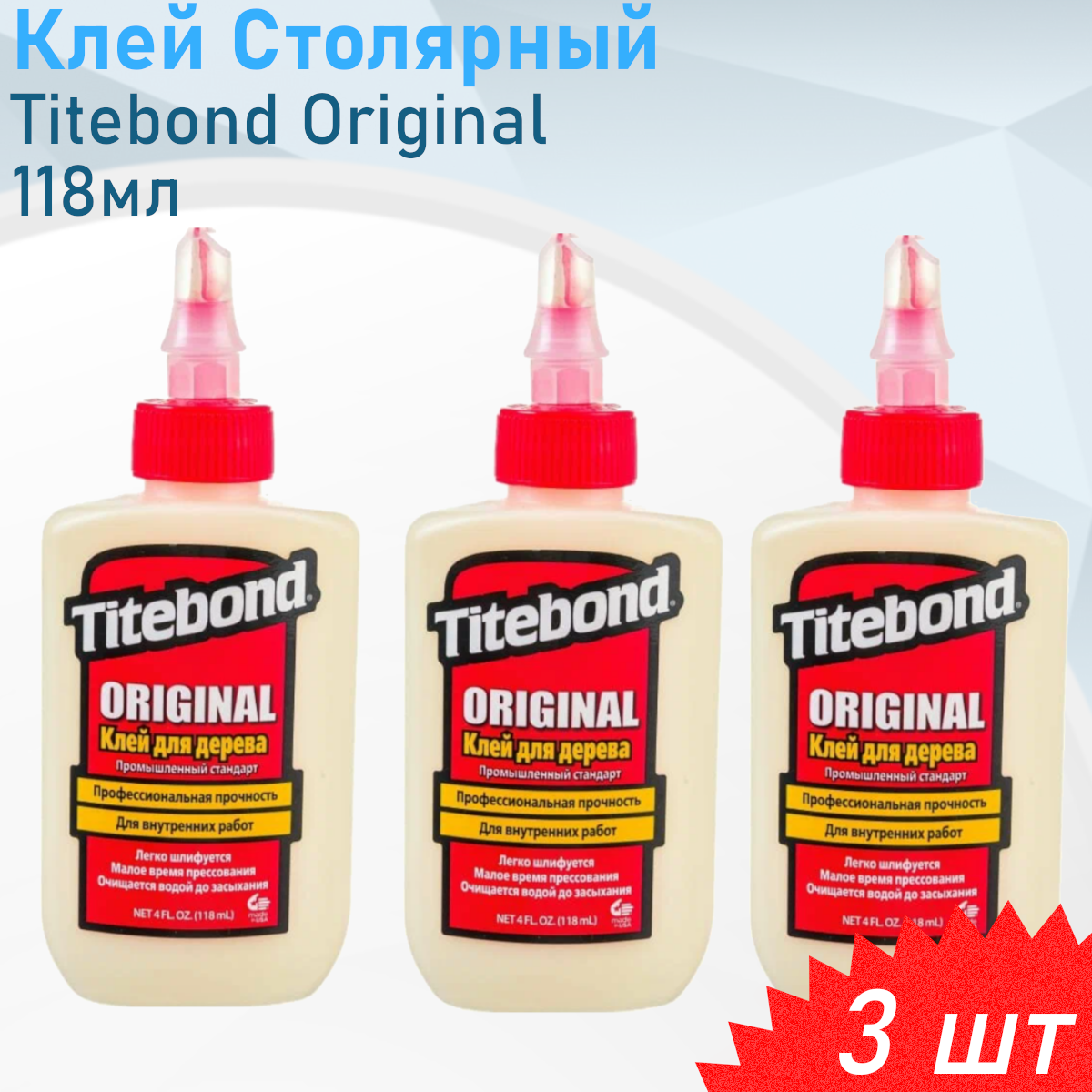 Купить Столярный ПВА клей для дерева Titebond Original D2, 118 мл х 3 штуки