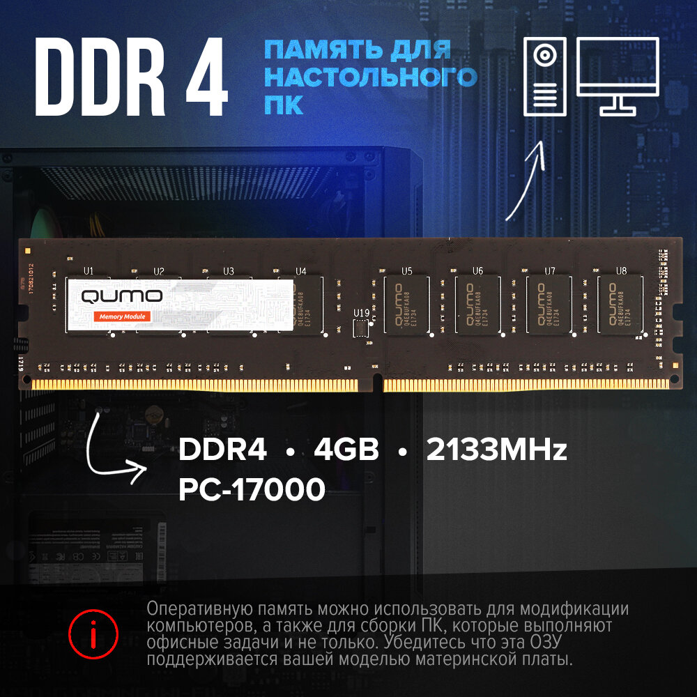 Купить Оперативная память DIMM QUMO 4GB DDR4-2133 (QUM4U-4G2133C15)
