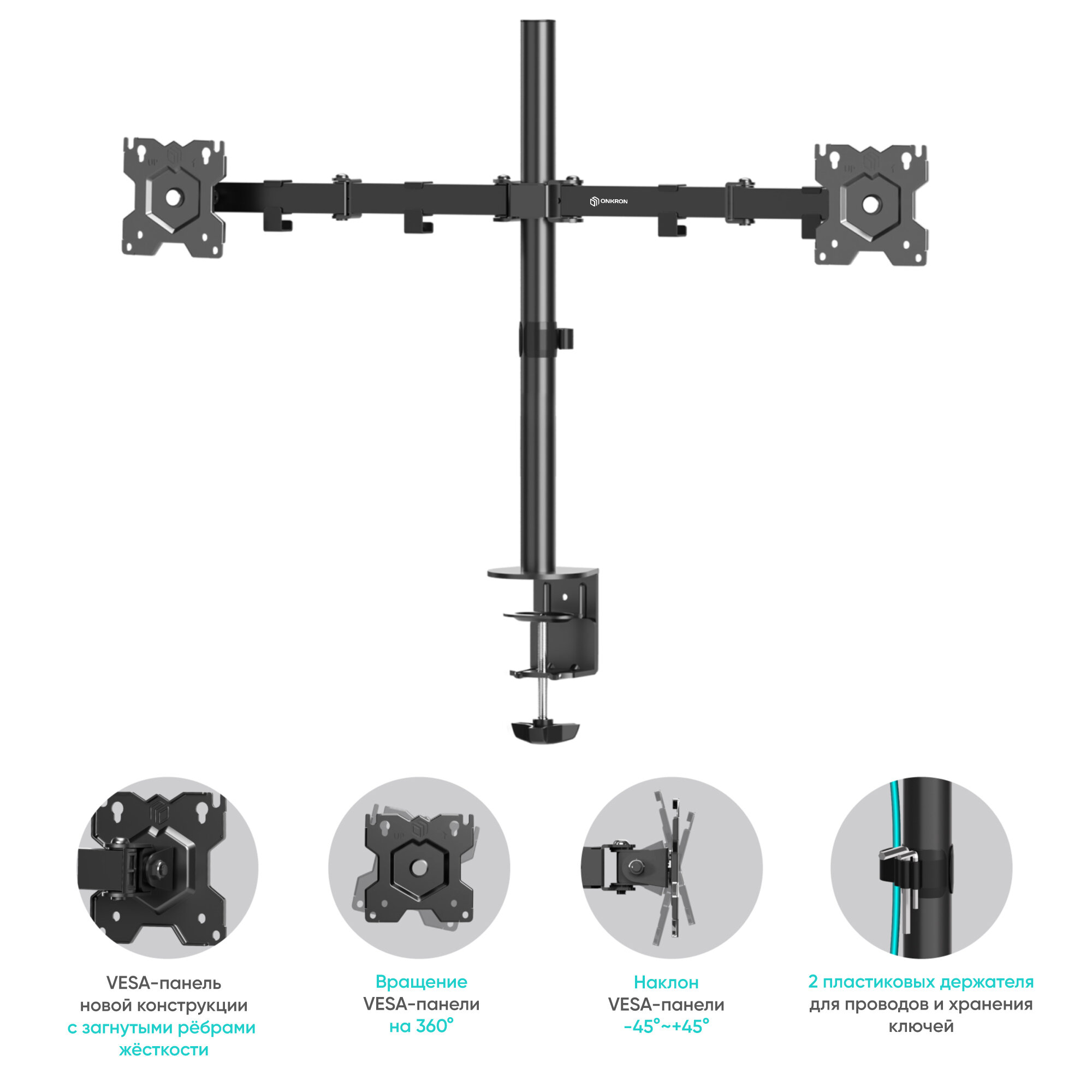 ONKRON кронштейн для двух мониторов 10"-32" настольный, чёрный D221E