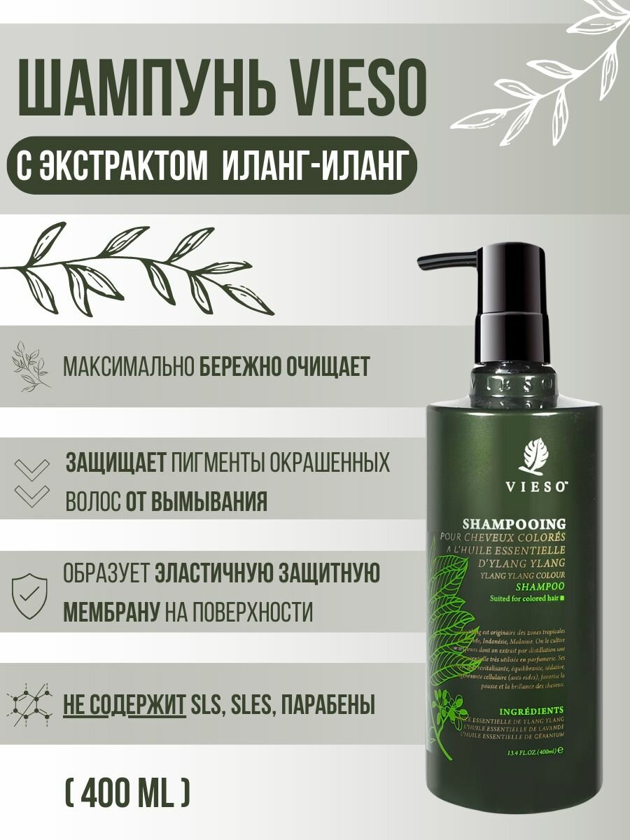 Купить VIESO, Шампунь для окрашенных волос с иланг-иланг, 400 мл, vs-02-1