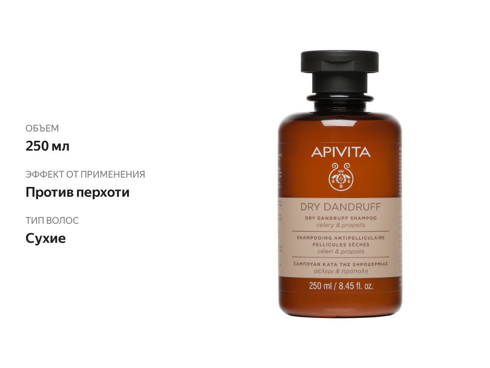 Шампунь APIVITA против перхоти для сухих волос с сельдереем и прополисом, флакон, 250 мл