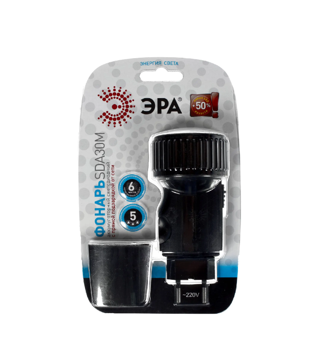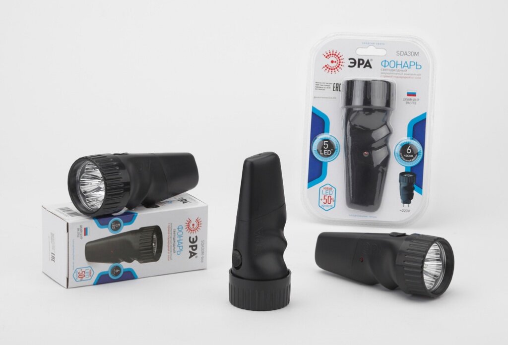 Фонарь эра черный sda30m ledх5 питание аккум ni-mh прямая подзарядка