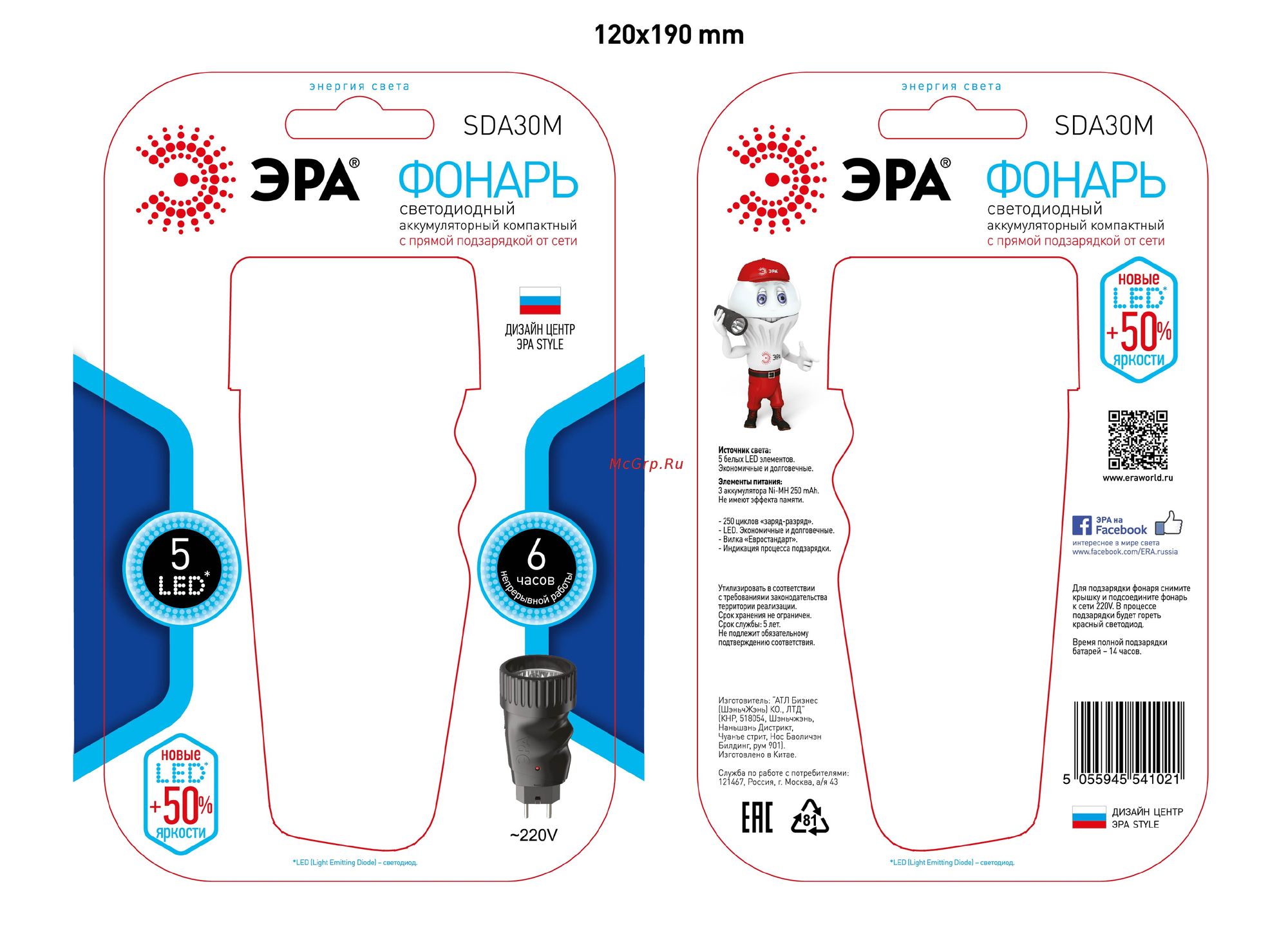 ЭРА SDA30M Фонарь NEW 5хLED, акку NiMH,бл Б0020022