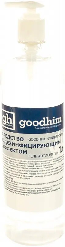 Goodhim Средство с дезинфицирующим эффектом универсал Гель антисептик, 1 л, Пэт, Дозатор, 610301 .