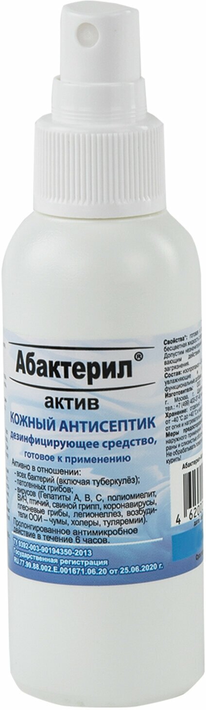 Кожный антисептик с вирулицидной активностью ГОСТ 12.1.007-76 Абактерил-Актив 100 мл спрей 1 шт.