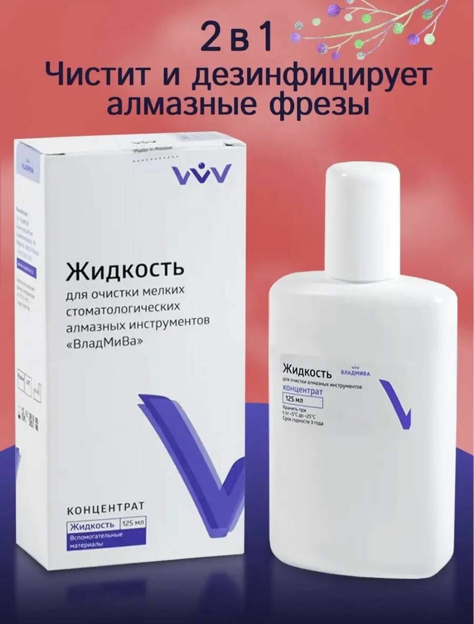ВладМиВа Жидкость для очистки мелких стоматологических алмазных инструментов, 125 мл