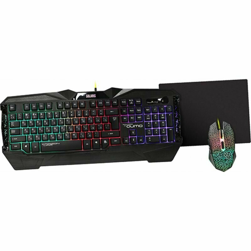 Комплект клавиатура + мышь + коврик Qumo Solaris Black USB, черный