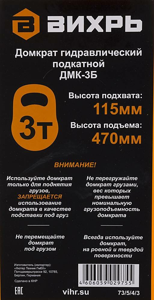 Домкрат Вихрь ДМК-3Б (73/5/4/3)