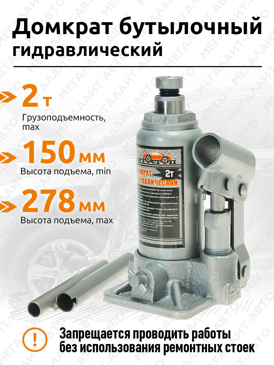 Домкрат 2т гидравлический бутылочный автостоп (150-278мм)