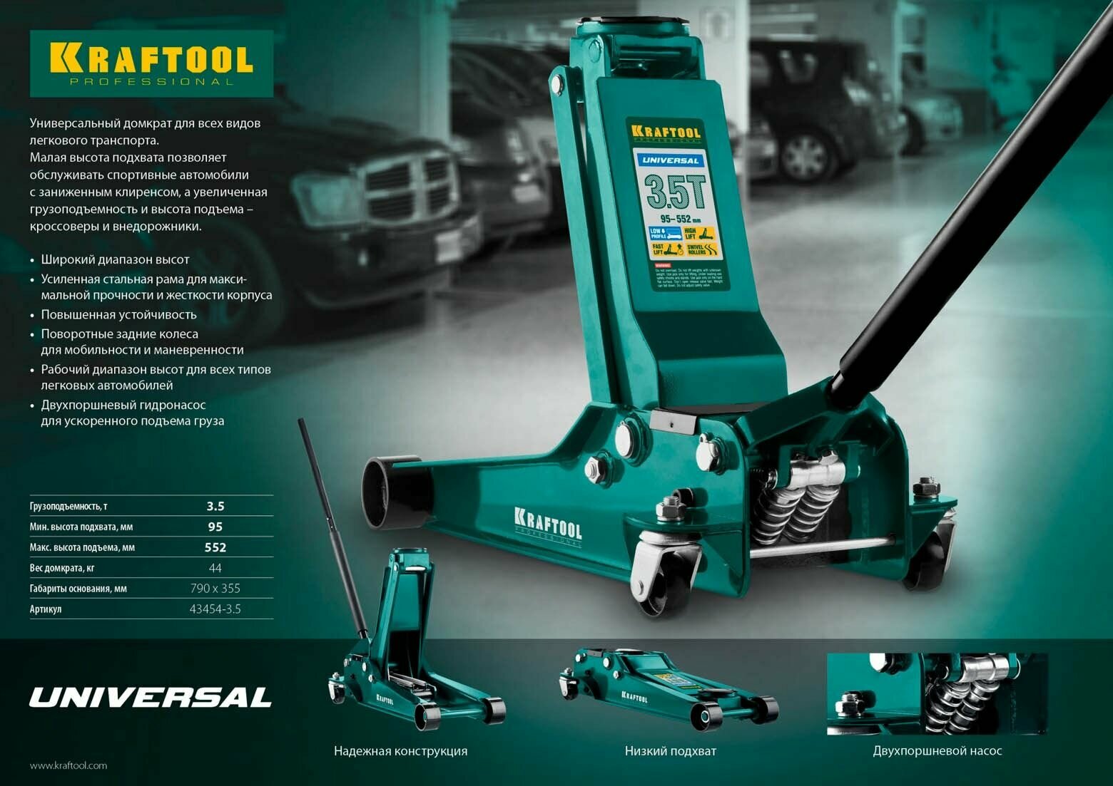 Купить Домкрат KRAFTOOL гидравлический подкатной "Universal", 3,5т, 95-552 мм, 43454-3.5 43454-3.5