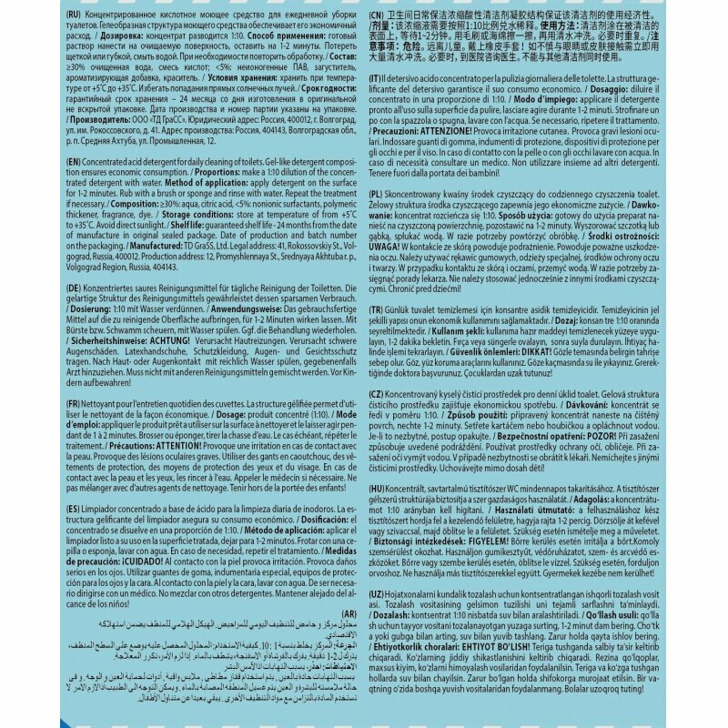 GRASS 125257 GRASS* A1+ Моющее ср-во для уборки туалетов (Концентрат) (5L)