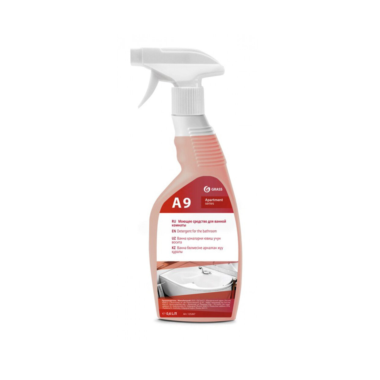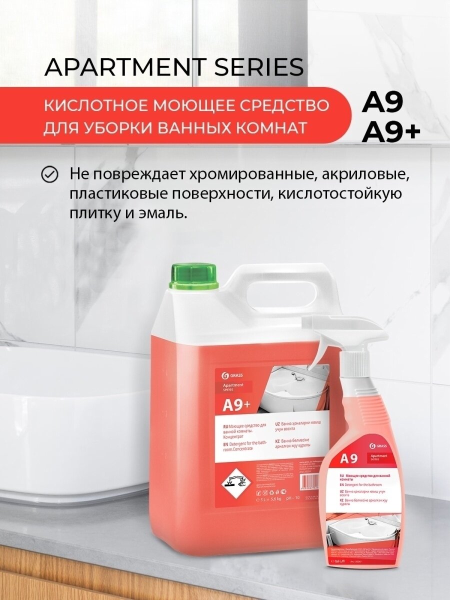 Средство моющее Grass Apartament series А9 кислотное для уборки ванных комнат триггер 0,6 л