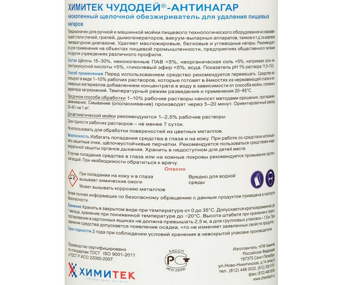 Промышленная химия Химитек Чудодей-Антинагар, 1л, чистящее средство для удаления нагара, щелочное, низкопенное (130805)