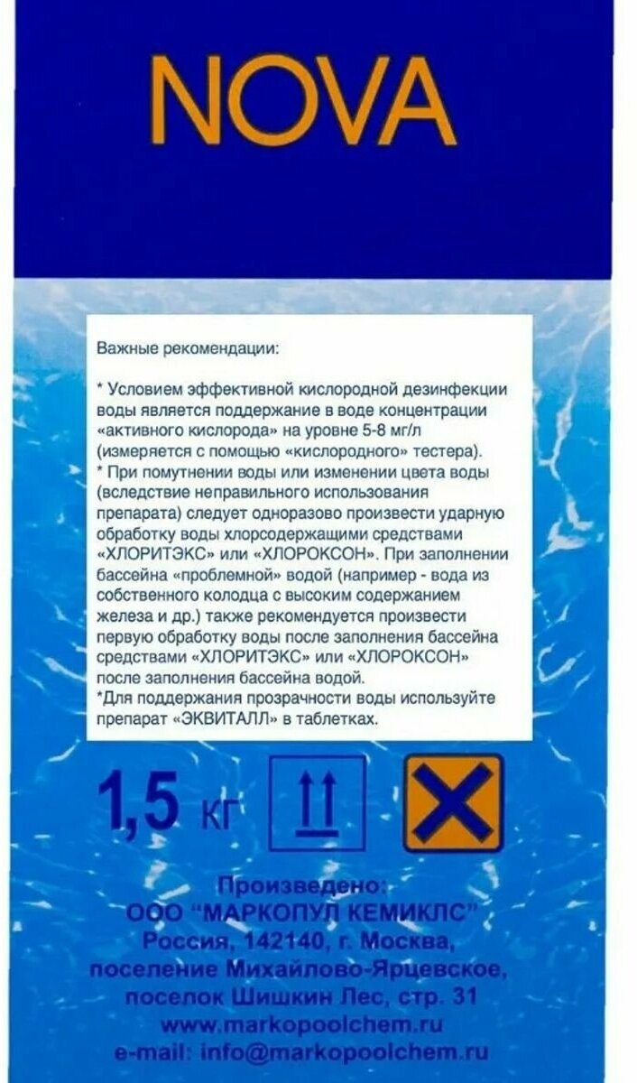 Активный кислород окситест Нова (1,5кг): Средство против водорослей для бассейна. Маркопул Кемиклс