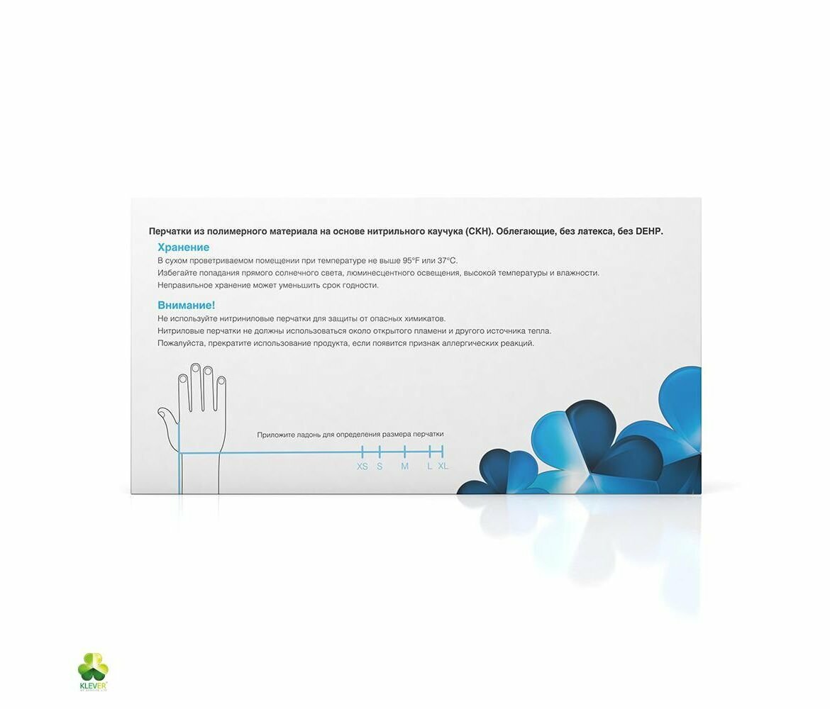 Перчатки нитрил, н/с, н/о, голубые, Klever (XL), 50 пар./уп
