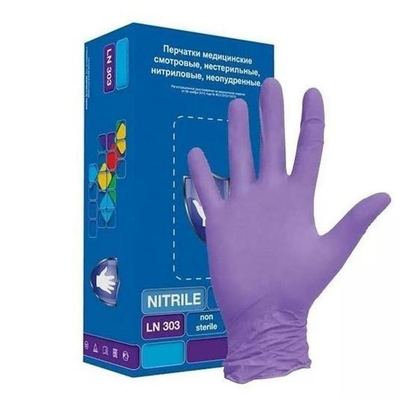Перчатки смотровые нитриловые Safe&Care LN303 фиолетовые (100 пар, S)