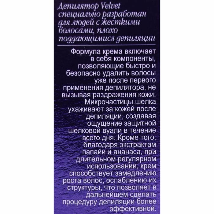 Крем для депиляции замедляющий рост волос шелком и экстрактами папайи и ананаса, Velvet 100 мл