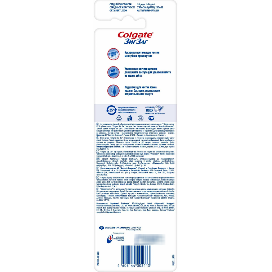 COLGATE Zig Zag Зубная щетка многофункциональная, средней жесткости, промоупаковка 2+1
