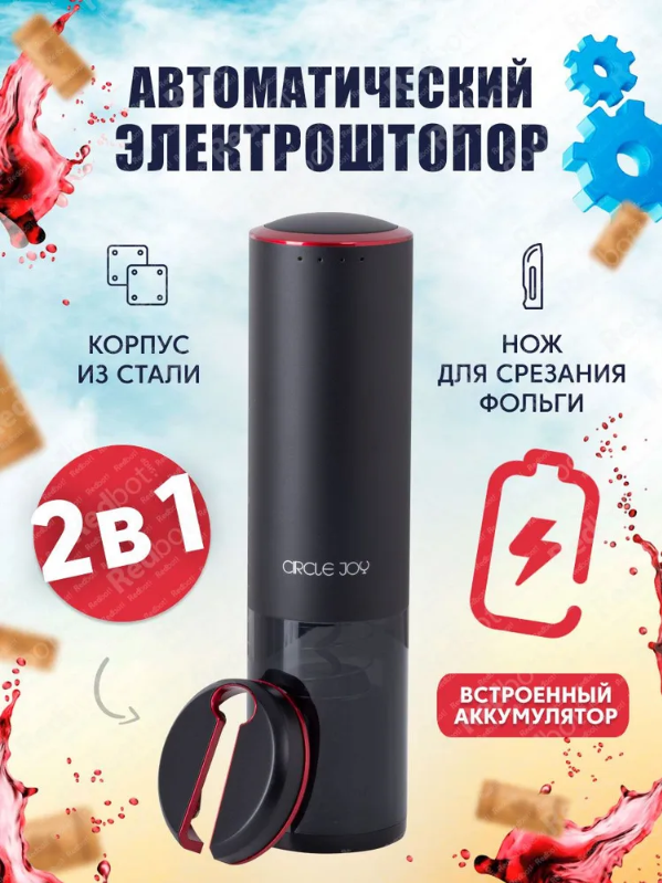 Купить Электрический штопор c питанием от батарей Circle Joy Electric Wine opener (CJ-EKPQ02) ростест, черный + красный