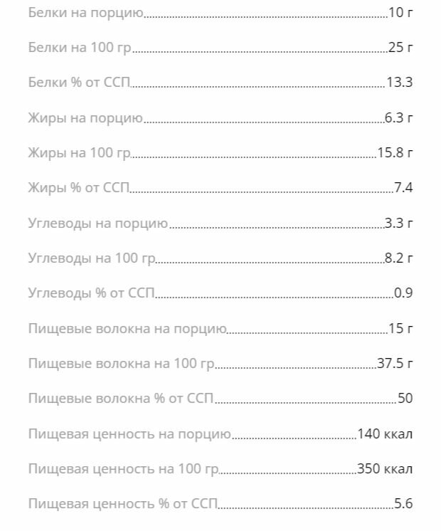 | Диетические особенности | без ГМО / без глютена / без сахара |