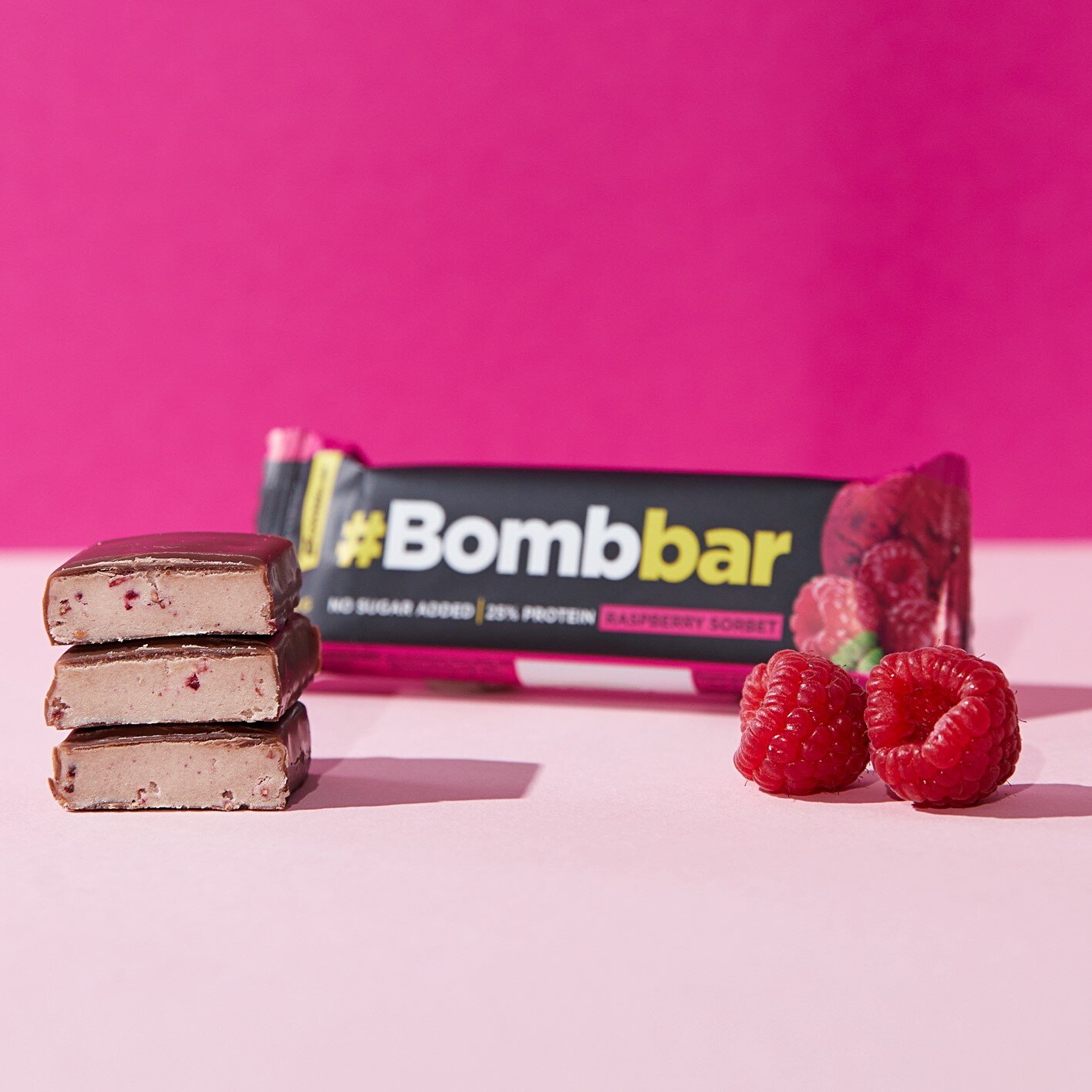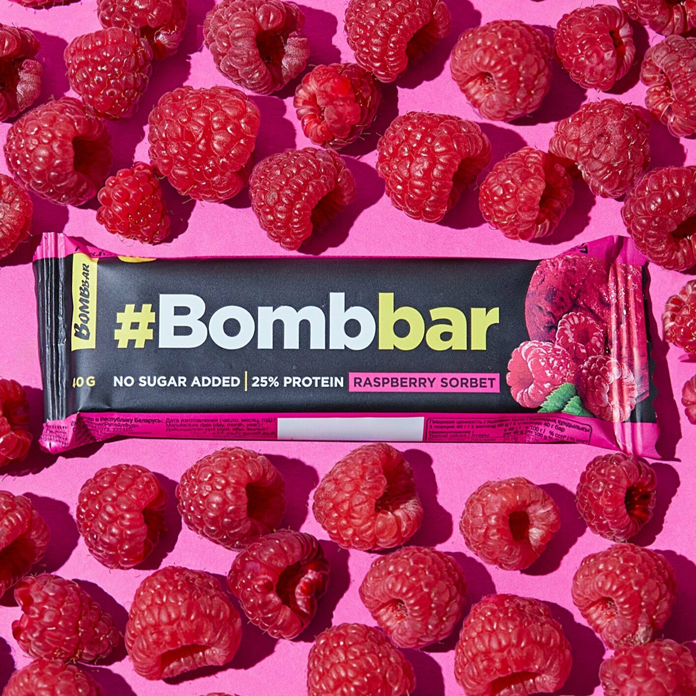 Bombbar Протеиновые батончики в шоколаде без сахара Малиновый сорбет, 30шт х 40г