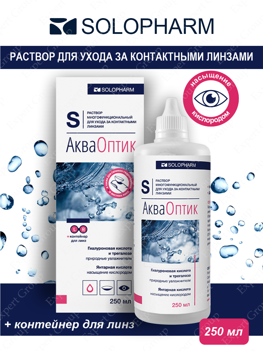 АкваОптик, раствор многофункциональный для ухода за контактными линзами, 250мл (с контейнером для ли