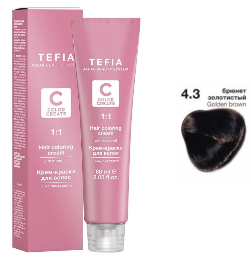 Купить TEFIA ABS Крем-краска для волос с маслом монои, 60 мл 4.3 брюнет золотистый