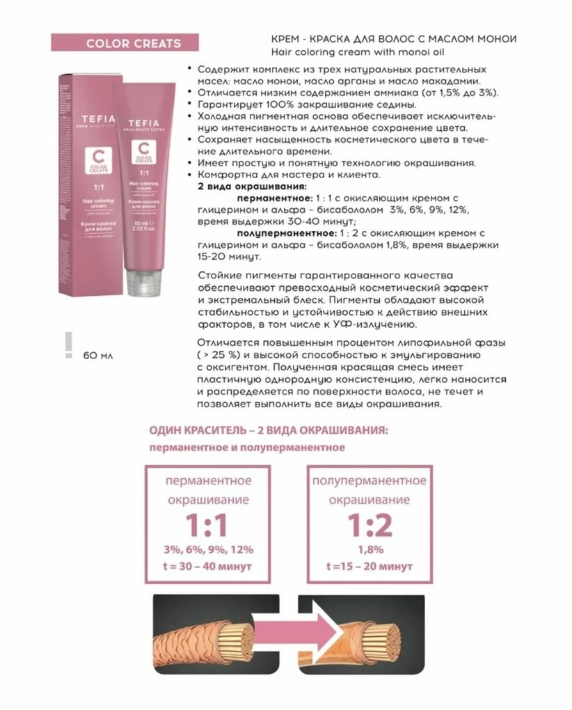 Купить TEFIA COLOR CREATS краска для волос 9.11 60МЛ
