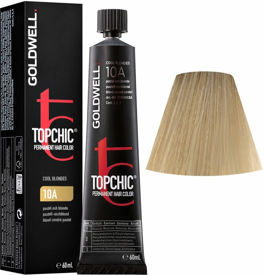Купить GOLDWELL TOPCHIC PERMANENT HAIR COLOR краска для волос 10A пепельный пастельный блонд 60МЛ