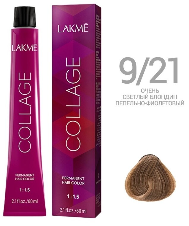 LAKMÉ, COLLAGE, Перманентная крем-краска для волос №9/21, Очень светлый блондин пепельно-фиолетовый, 60мл