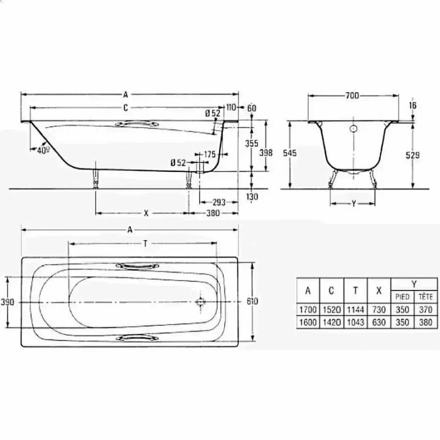 Чугунная ванна Классик 150X70 Универсал